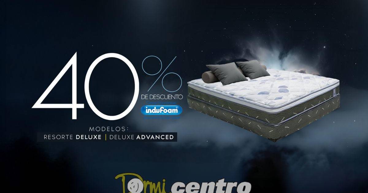 En esta ocasión, Dormicentro sorprende con una promoción imperdible: un 40% de descuento en dos modelos de la reconocida marca Indufoam. Se trata de las camas Resorte Deluxe y Deluxe Advanced, disponibles en todos los tamaños: King, Queen, Matrimonial y Unipersonal. Una oportunidad única para renovar tu descanso con tecnología de vanguardia.