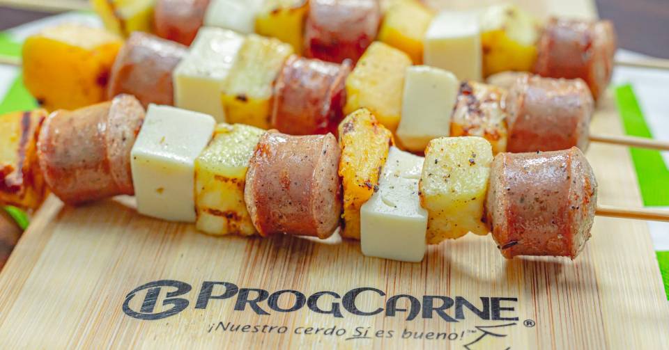 Para empezar con el carnaval de recetas festivas, te mostramos como apuesta principal unos brochetines de salchicha alemana de Progcarne, botana sencilla, fácil de preparar y ultra deliciosa.