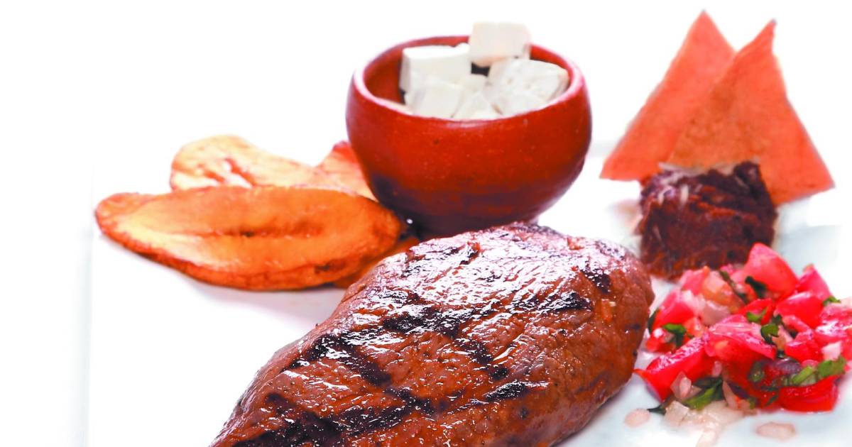 4. Servir cada filete con las tajadas de plátano, chismol, frijoles, queso y tortillitas fritas.