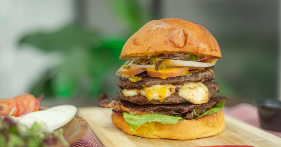 HAMBURGUESA DOBLE CON COSTRA DE QUESILLO Y CHICHARRÓN
