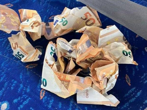 Los conductores no dudaron detenerse en la mitad de la carretera para quedarse con algunos de los billetes de 50 y hasta 500 euros que “salieron volando” de un auto accidentado