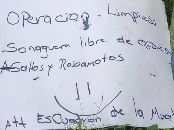 Con un rótulo con la leyenda “operación limpieza, Sonaguera libre de extorsión asaltos y roba motos” fueron encontrados los cuerpos de dos jóvenes en Sonaguera