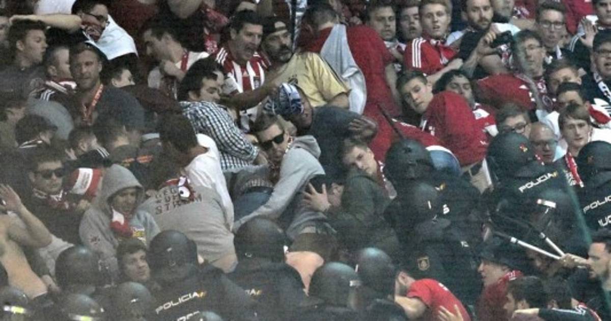 Los seguidores del Bayern Múnich se agarraron a golpes con la fuerza policial mientras se desarrollaba el partido entre el Real Madrid y los Rojos.