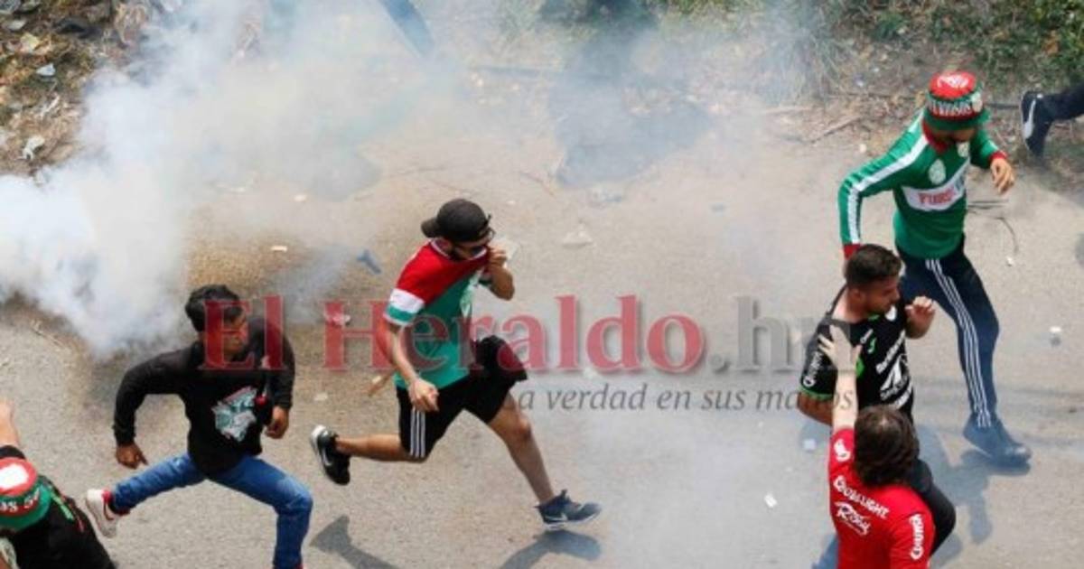 En las imágenes captadas por EL HERALDO afuera del recinto que albergará el duelo entre Verdolagas y Águilas, se observa a varios jóvenes, identificados con camisetas del club esmeralda, corriendo mientras los uniformados lanzan gases lacrimógenos.
