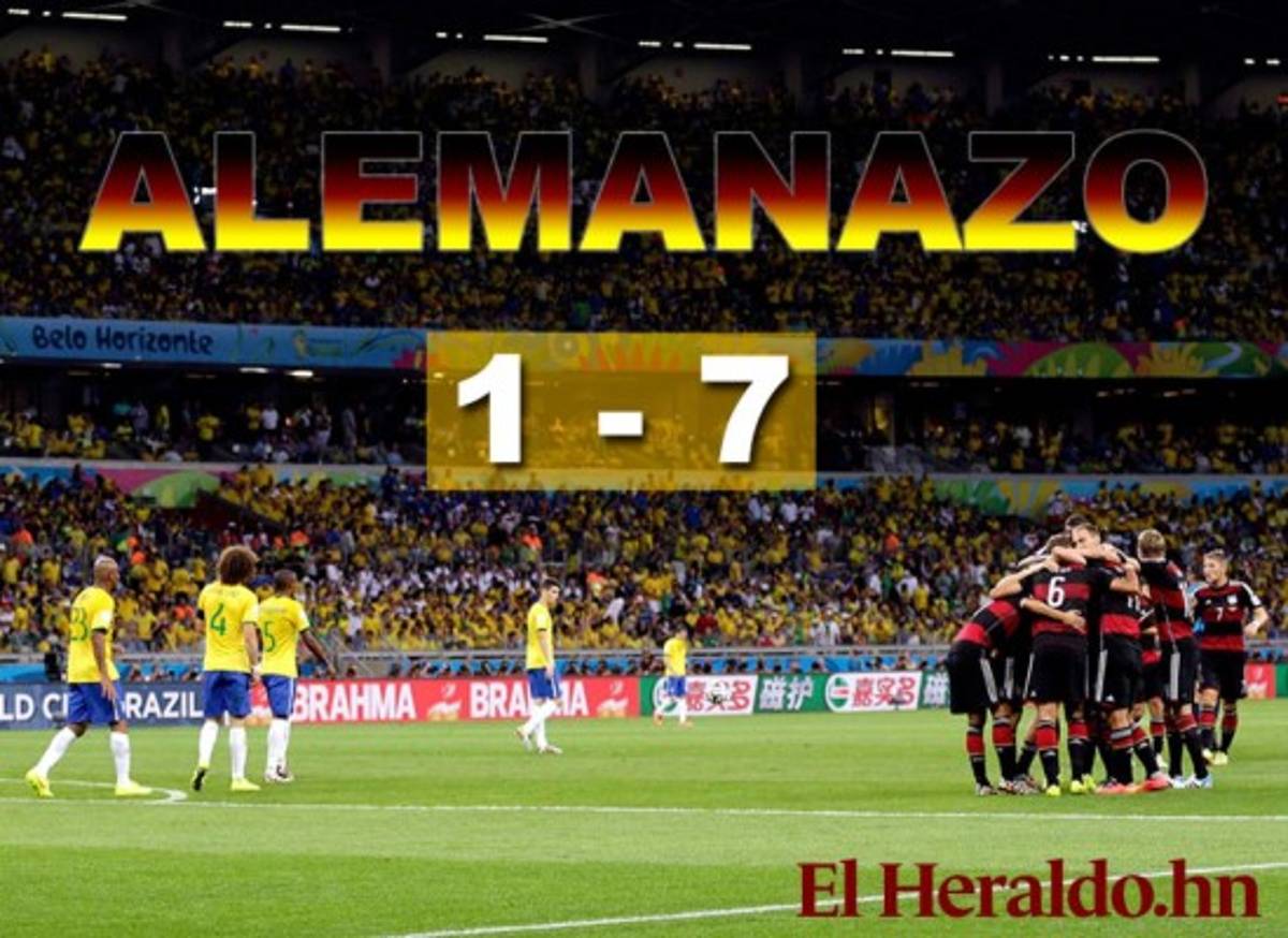 Thomas Müller a los 11 minutos, Miroslav Klose a los 23, Toni Kroos a los 24 y 26, Sami Khedira a los 29 y Andre Schürrle a los 69 y 79 minutos anotaron los tantos de la histórica victoria de Alemania.