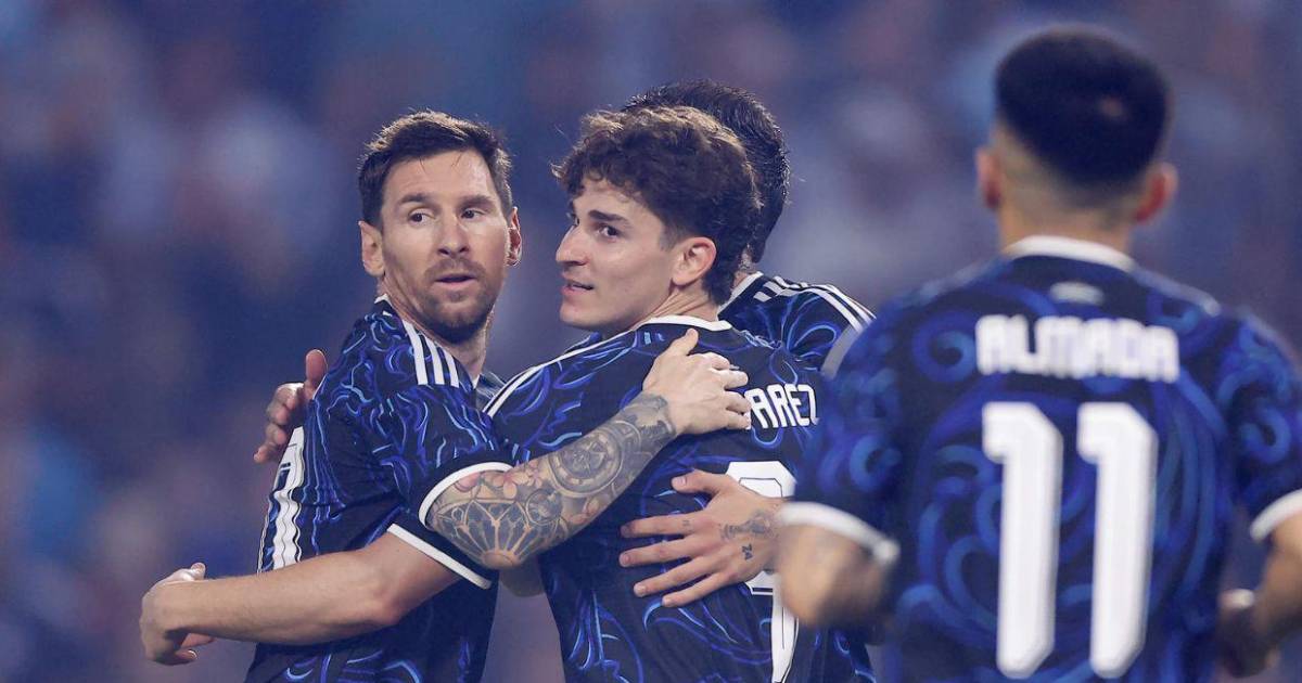 La Albiceleste está en ventaja desde el minuto 4 con gol de Julián Álvarez, quien definió solo en el área tras ser habilitado por Messi.