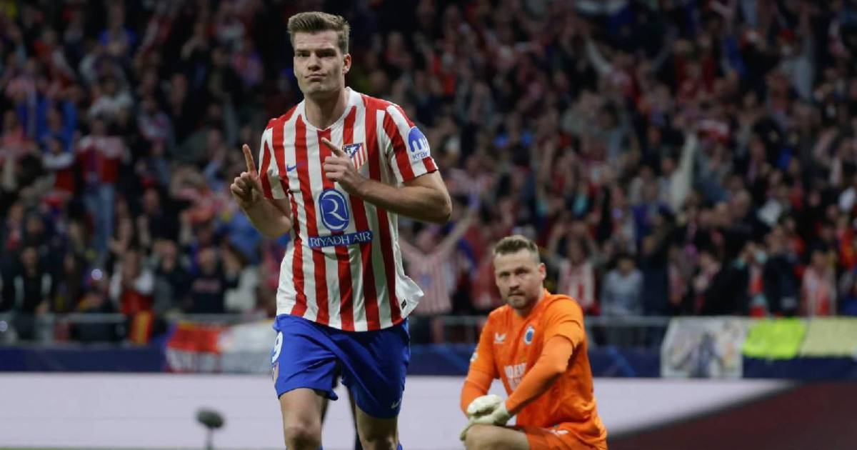 Un gol en nueve segundos. Del patadón del portero esloveno, más que intencionado y diseñado en la pizarra, al zurdazo dentro del área contraria de Sorloth. Entre medias, el balón voló de un campo a otro, dio dos botes en la pugna entre el delantero del Atlético y el central Mechele, sostenida por el cuerpo de Sorloth, hasta que controló con el muslo y soltó su disparo, tan sorprendente hasta para Mignolet, cuyo error también fue crucial.