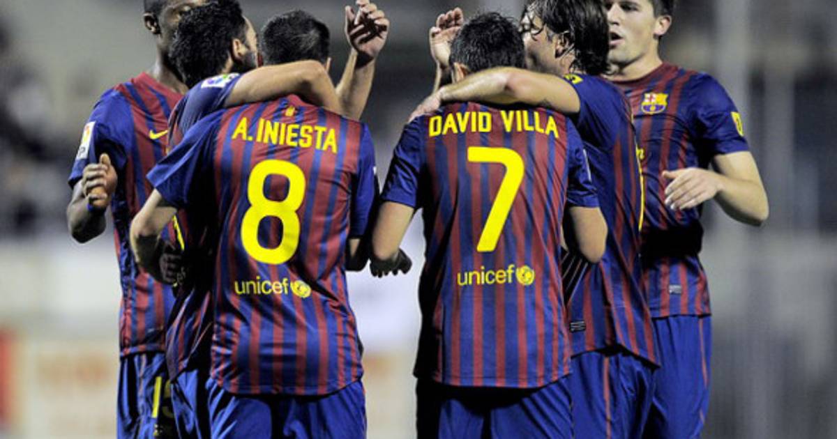 Pinto; Dos Santos, Fontás, Puyol, Maxwell; Keita, Xavi, Iniesta (Busquets, 63); Cesc (Rafinha, 76), Villa y Tello.