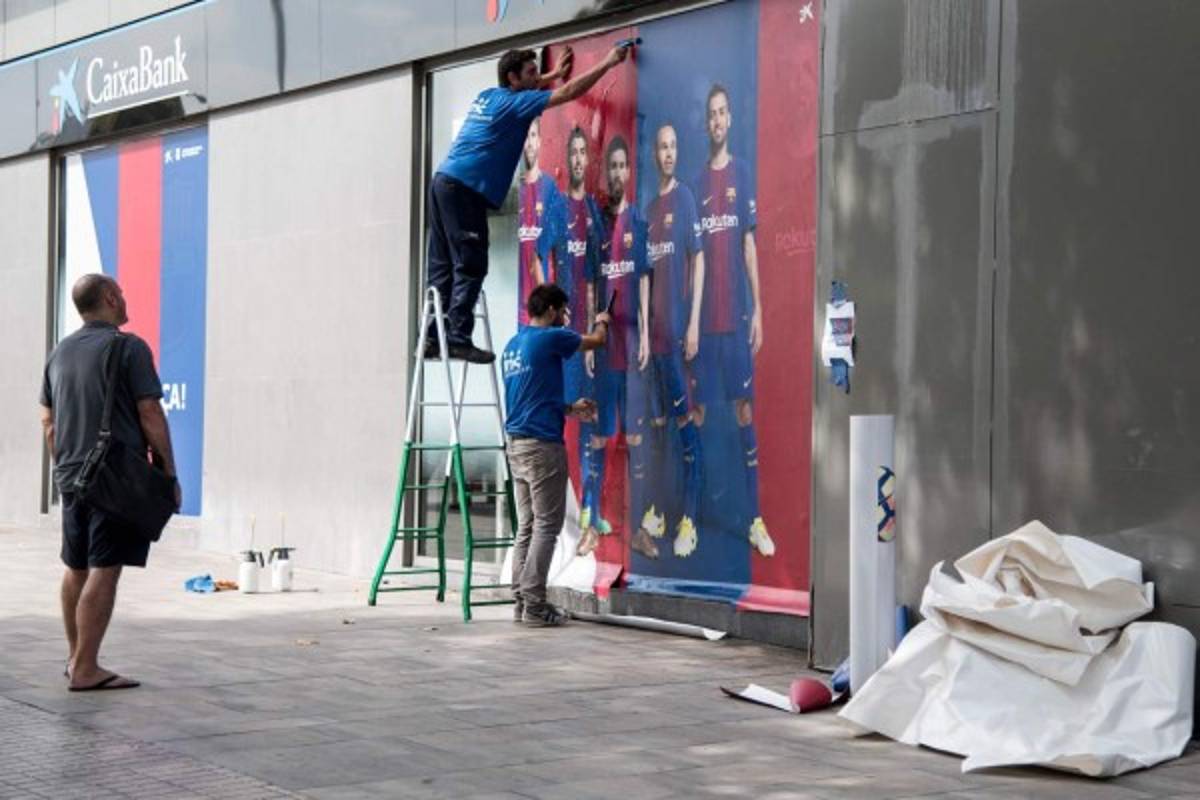 En las enormes vallas se observa a Gerard Piqué, Luis Suárez, Leo Messi, Andrés Iniesta y Sergio Busquets, ya sin la imagen del joven futbolista.
