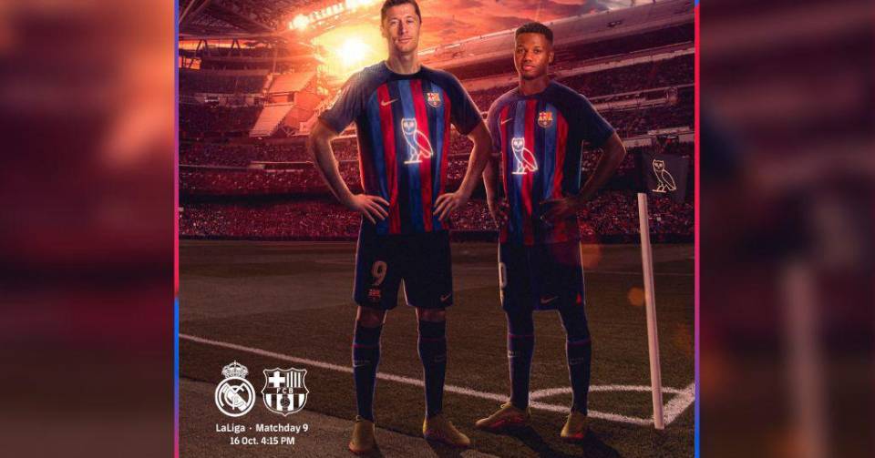 El Barça “saltará al terreno de juego en el Clásico del domingo con una camiseta que, por primera vez, no lucirá en el frontal el logo de su partner principal, sino el emblema de un artista de renombre internacional: el cantante y compositor Drake, ganador de 4 premios Grammy y el primero en alcanzar los 50.000 millones de reproducciones en Spotify”, precisó el club azulgrana el viernes.