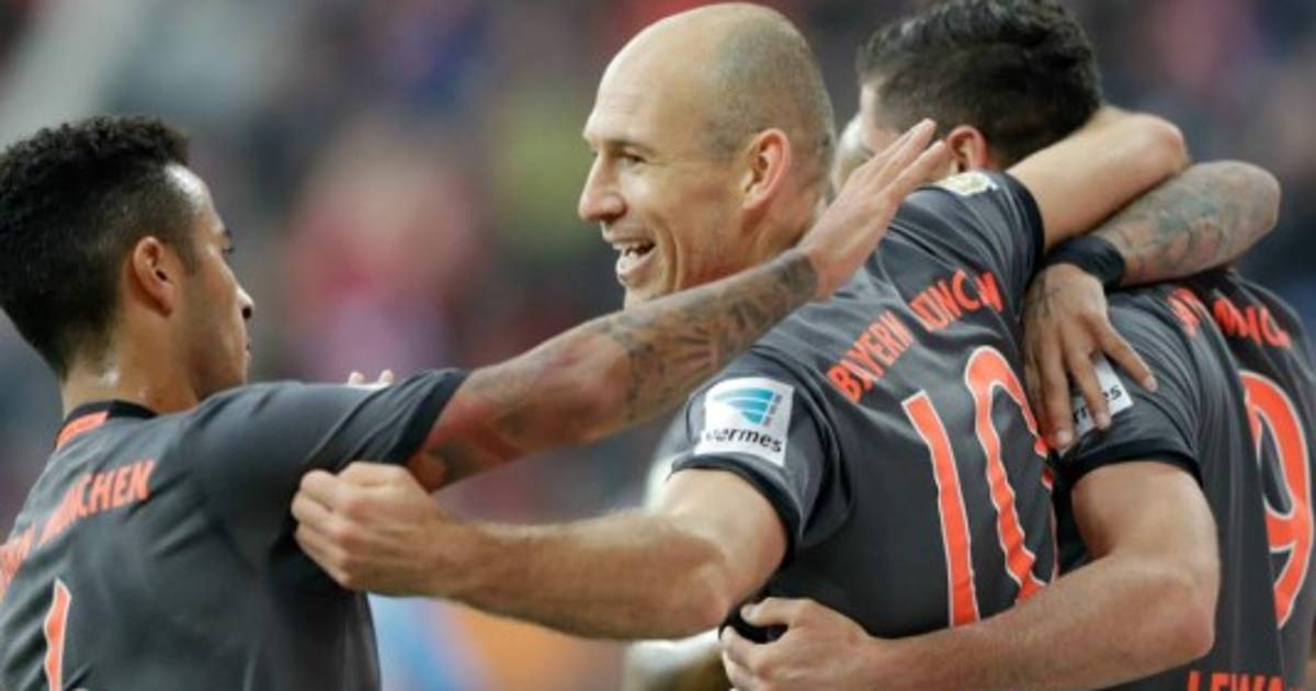 Lewandwoski hizo dos goles, en ambos casos asistido por Robben, y devolvió el favor en el gol del holandés para redondear la victoria de Bayern por 3-1 sobre Augsburgo, el mismo rival al que venció el miércoles por un marcador idéntico en la Copa de Alemania.