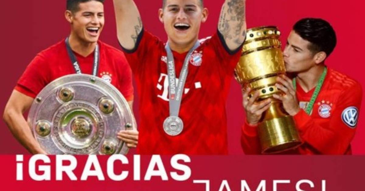 Con una imagen del colombiano levantando el escudo de campeón de Bundesliga, el Múnich escribió '¡Gracias, James!', dando a conocer así la noticia.