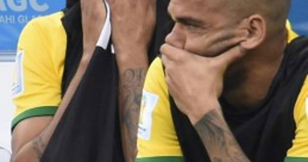 Los jugadores del FC Barcelona, Neymar (lesionado) y Dani Alves, se lamentan en el banco.