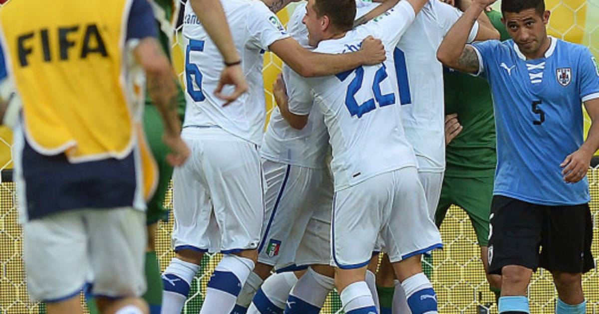En el alargue, Italia resistió los embates desprolijos de Uruguay, pese a que quedó con diez por la roja a Montolivo.
