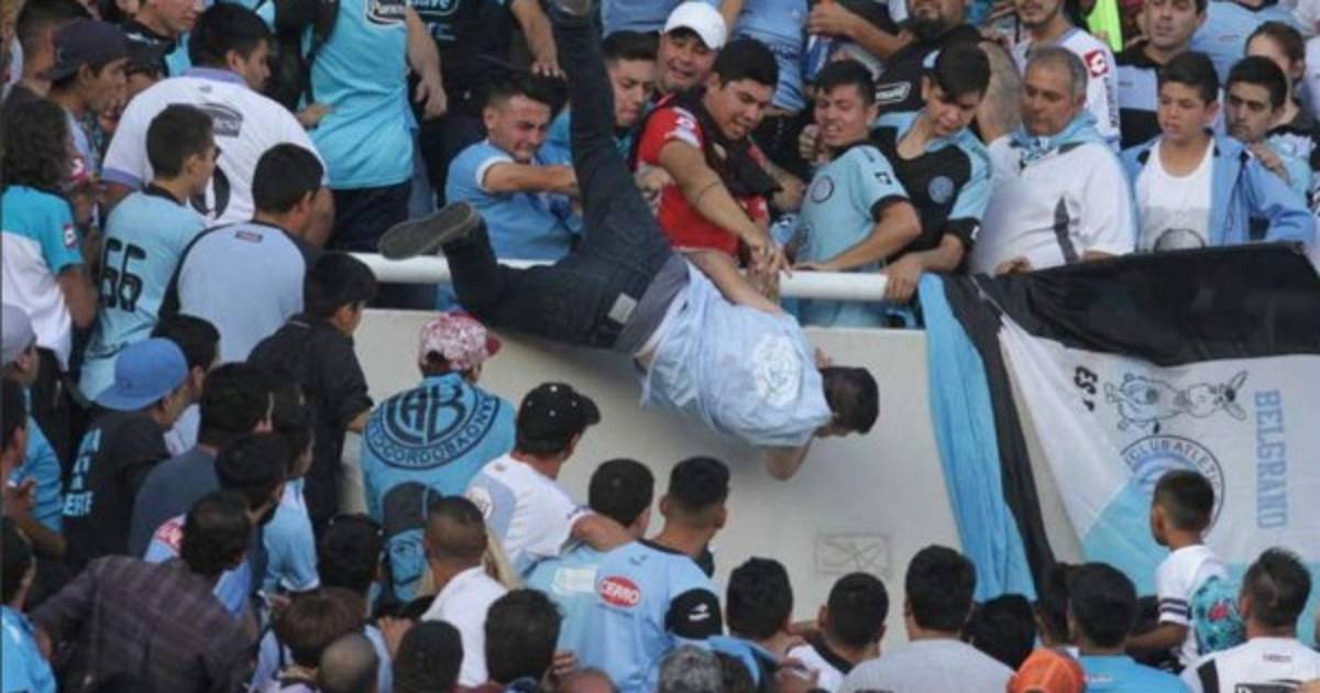 VEA: Video muestra golpiza y caída del hincha de Belgrano desde la tribuna