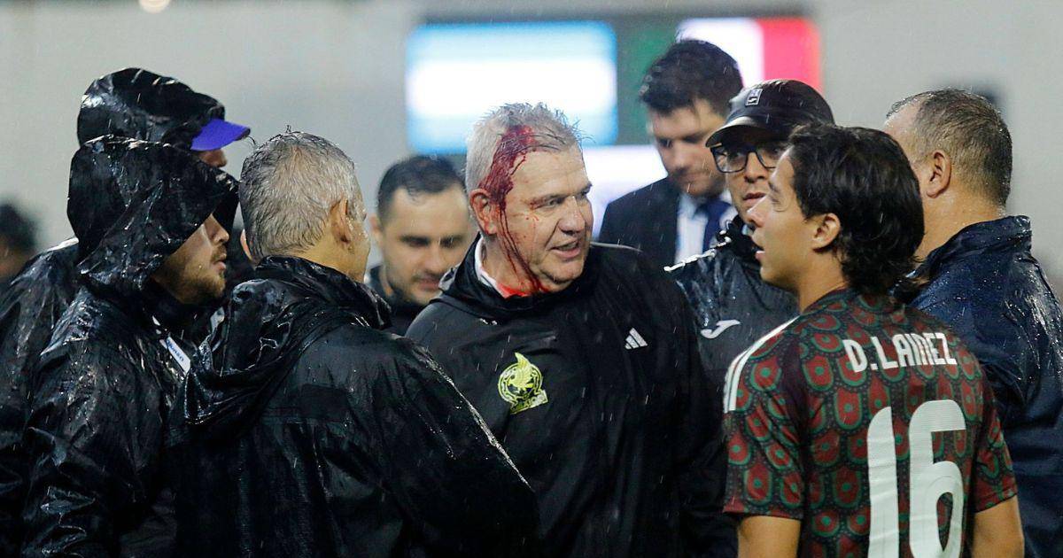 Al ir a saludar al seleccionador hondureño, Reinaldo Rueda, el técnico mexicano recibió el impacto del objeto en la cabeza, lo que provocó que empezara a sangrar y que tuviera que ser atendido por los servicios médicos.