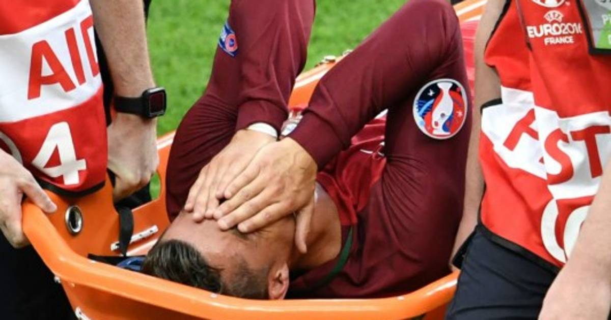 Cristiano Ronaldo tuvo que ser sustituido por una lesión en su rodilla izquierda, evacuado en camilla y entre lágrimas, en el minuto 25 de la final de la Eurocopa entre Francia y Portugal, este domingo en el Stade de France, después de haber recibido un golpe de Dimitri Payet en el minuto 8.