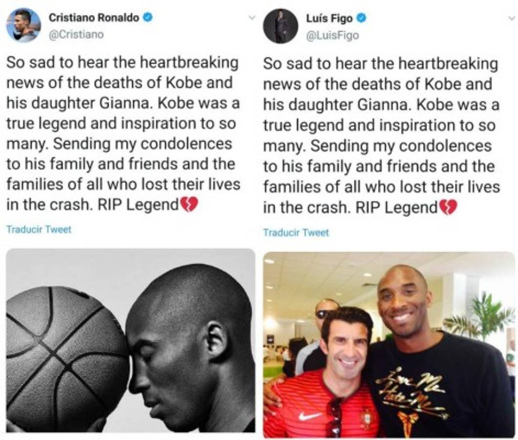 'Es muy triste escuchar las desgarradoras noticias de la muerte de Kobe y su hija Gianna. Kobe fue una verdadera leyenda e inspiración para muchos. Enviar mis condolencias a su familia y amigos y las familias de todos los que perdieron la vida en el accidente. RIP Legend', fue el mensaje que publicaron ambos jugadores en sus redes sociales.