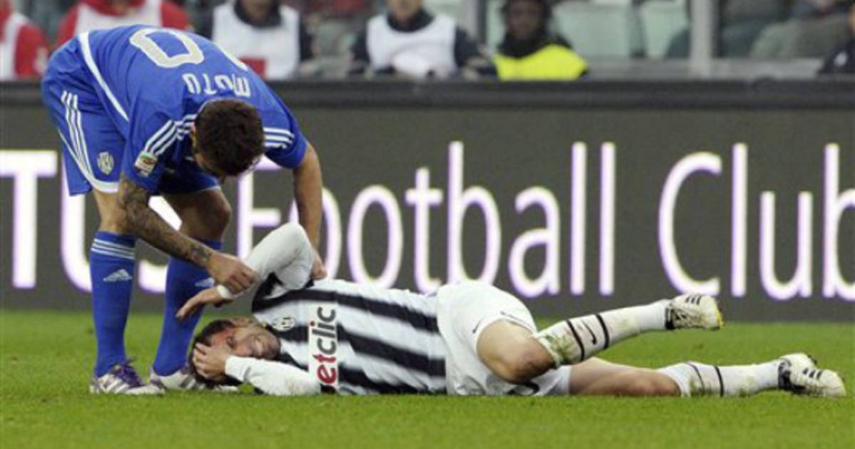 Después de recibir los primeros auxilios en la cancha, Del Piero fue retirado en una camilla y llevado al vestuario del Juventus, donde le aplicaron la sutura.
