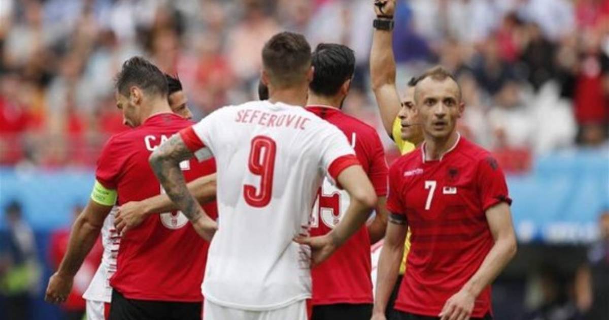 El capitán de Albania Lorik Cana recibió la primera tarjeta roja de la Eurocopa-2016, este sábado en el encuentro que su selección disputa contra Suiza en Lens.
