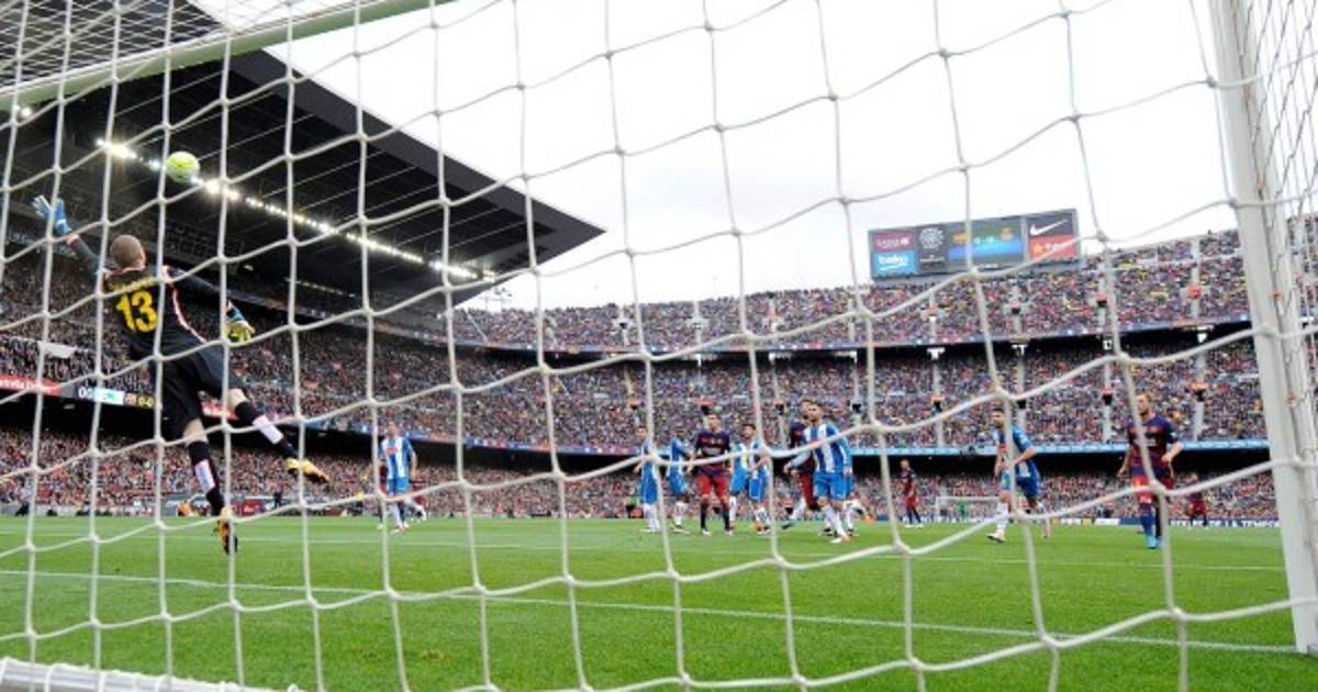 El argentino Lionel Messi anotó este domingo un golazo de tiro libre que abrió el marcador en el partido que el Barcelona se impuso con un contundente 5-0 frente al Espanyol en la penúltima jornada de la Liga de España.