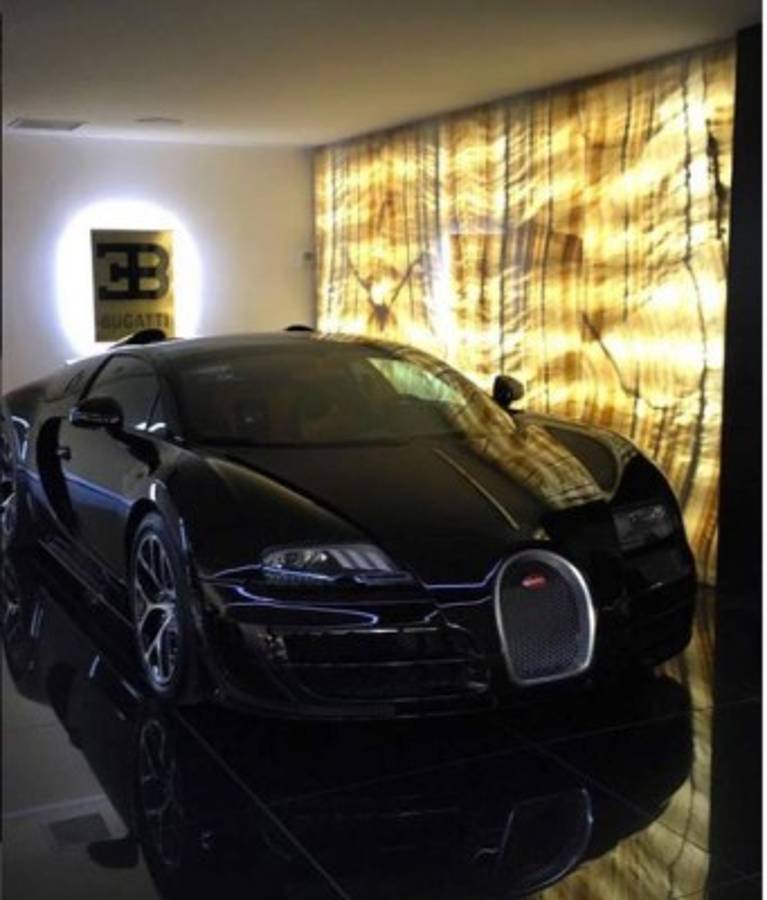 La foto muestra su nuevo carro último modelo de alta gama, un Bugatti Veyron negro que tiene un costo aproximado de 3 millones de dólares, pero esto puede incrementar según los gustos de cada dueño.