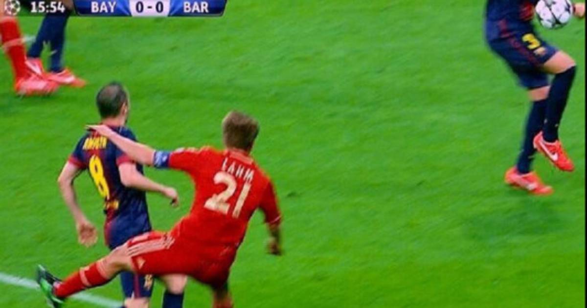 A los 15 minutos del Bayern Múnich-Barcelona se dio un claro penal cuando Lahm disparó a portería y el brazo de Pique impidió que la pelota fuese a portería.