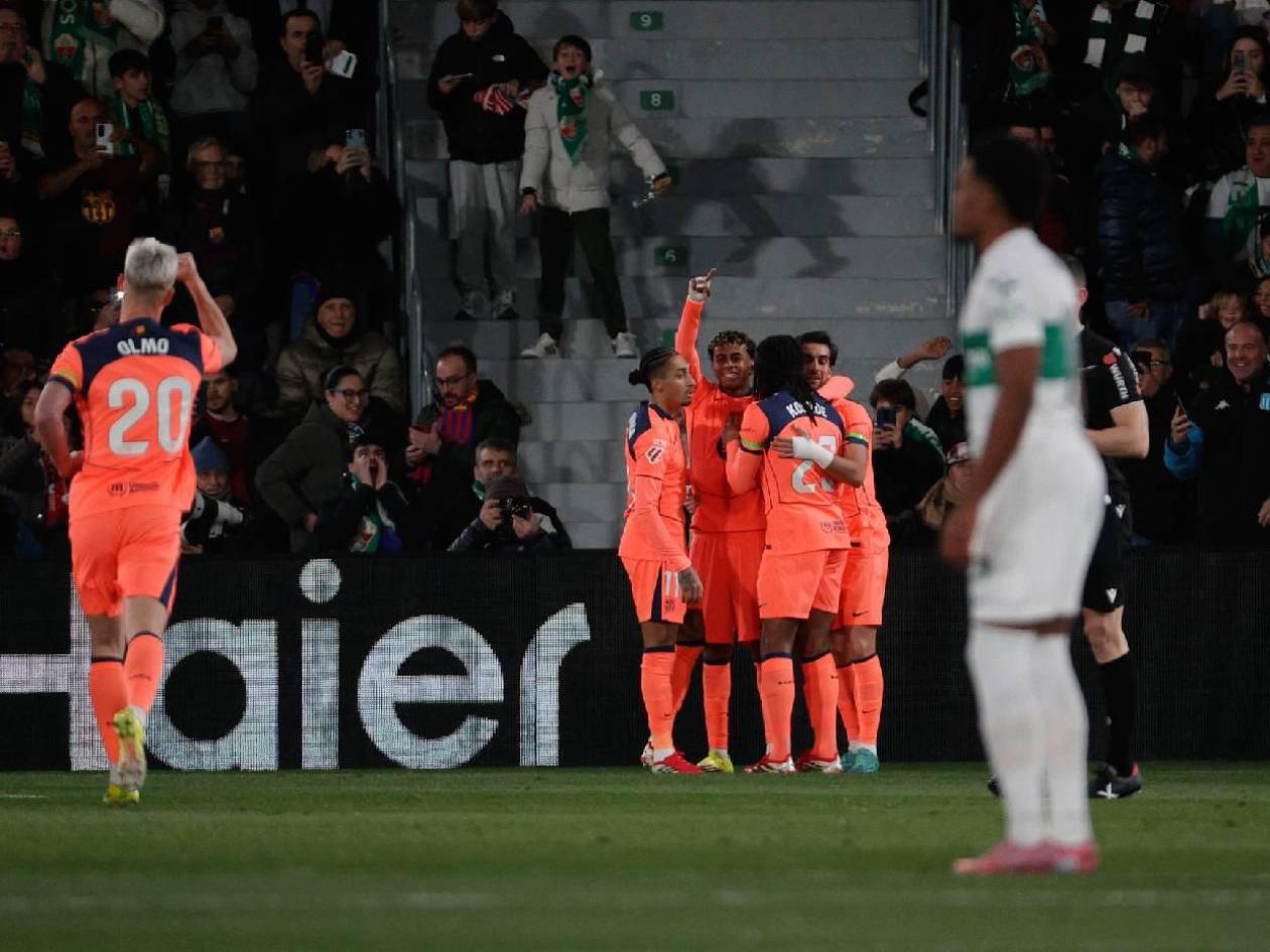 Elche, España.- El Barcelona logró este sábado una plácida victoria en su visita al Martínez Valero (1-3) que le permite proteger el liderato durante una jornada más ante un Elche que sigue sin ganar en 2026 y se acerca peligrosamente a los puestos de descenso.