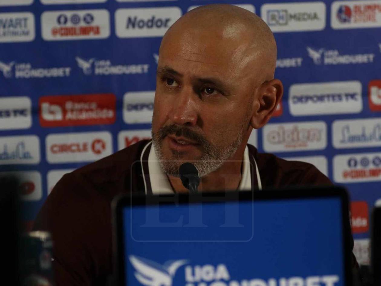 Tegucigalpa, Honduras.- Eduardo Espinel, director técnico del Olimpia, atendió a la prensa tras el empate 1-1 en el clásico ante Real España por la Liga Nacional de Honduras, un resultado que dejó al equipo con preocupación por su irregular arranque en la primera vuelta.