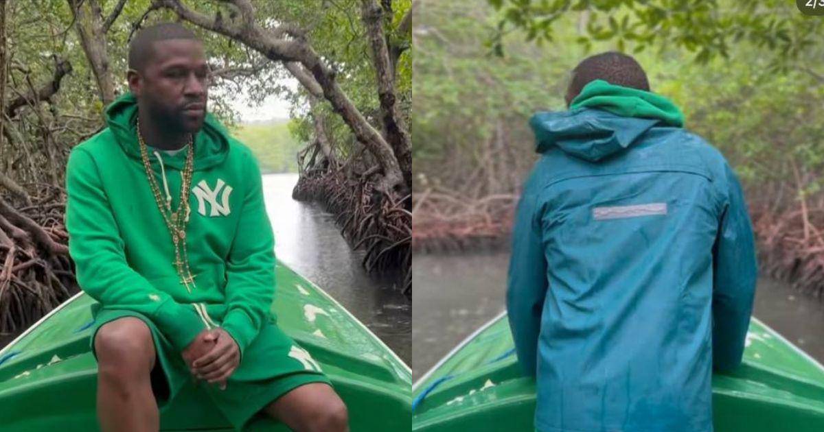 En el video se le ve navegando por un manglar, vestido con un traje verde y cubierto con un capote, mientras una leve llovizna cae sobre él.