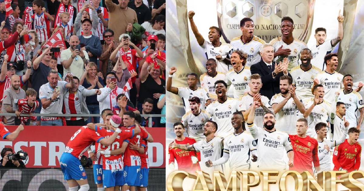 Madrid, España.- El Girona se quedó con el derbi catalán este sábado tras imponerse ante Barcelona en Montilivi (4-2) por la jornada 34 de LaLiga, un resultado que festejaron en Real Madrid porque sirvió para proclamarse campeón del certanen a cuatro fechas del cierre.