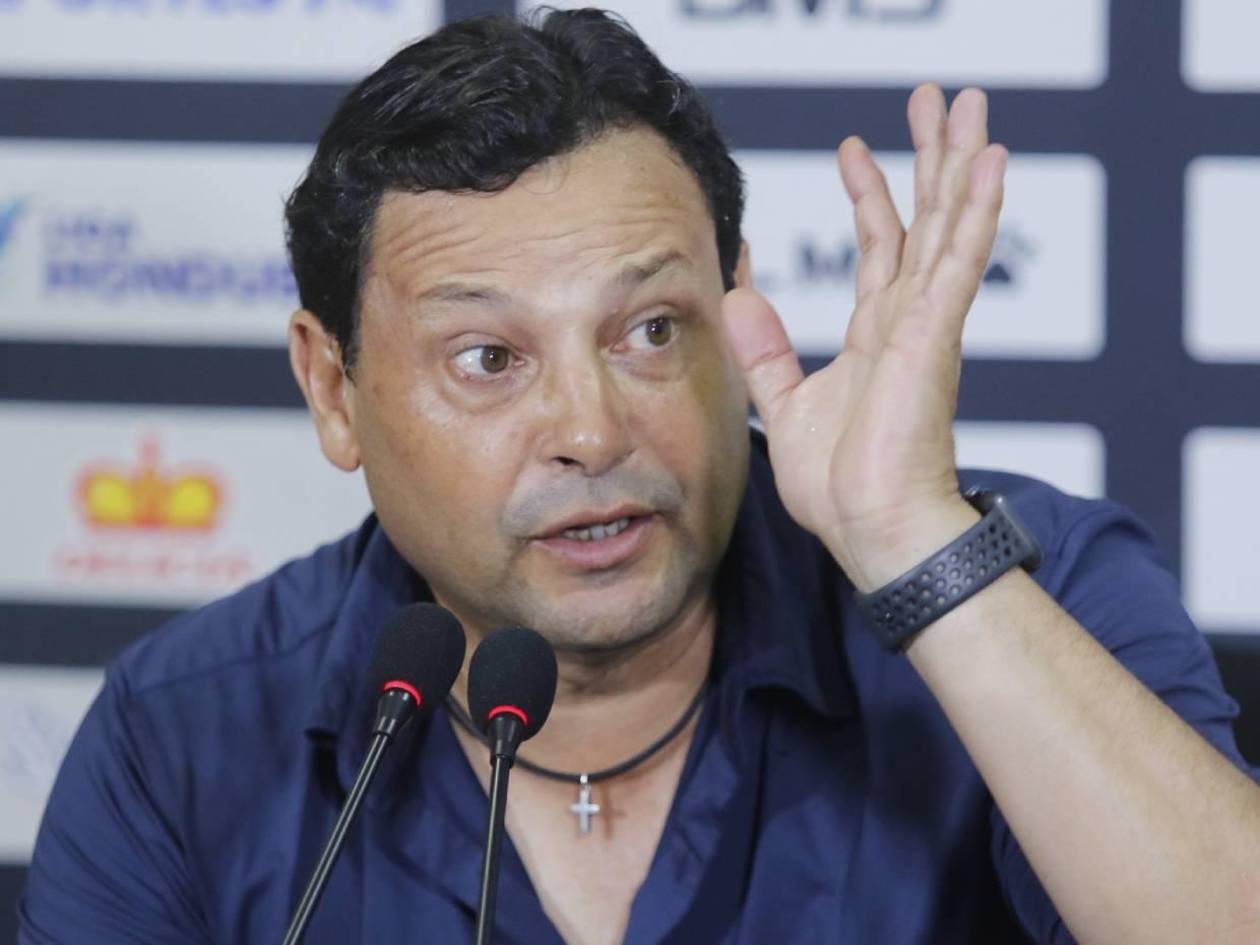 San Pedro Sula, Honduras.- El técnico costarricense Jeaustin Campos habló el tema del arbitraje y de las expulsiones seguidas que están sufriendo el Real España, además, es sorprendido en plena conferencia con una llamada que tuvo que contestar.