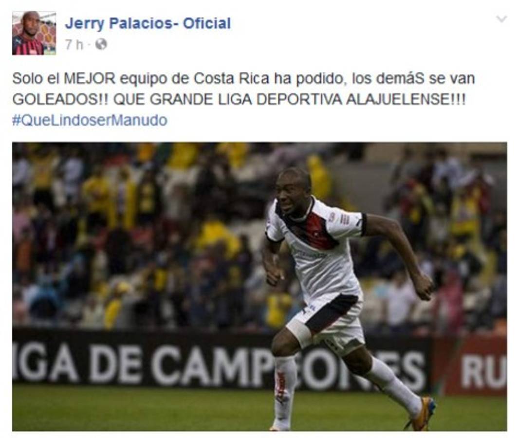 'Solo el MEJOR equipo de Costa Rica ha podido, los demáS se van GOLEADOS!! QUE GRANDE LIGA DEPORTIVA ALAJUELENSE!!! #QueLindoserManudo', escribió el ahora atacante del Vida de La Ceiba.