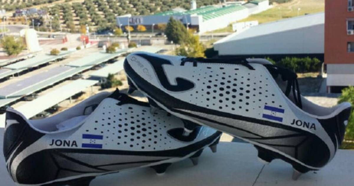 'Nuevas botas, ¡orgullo catracho!', escribió Jona en Twitter con la imagen de sus tacos en color gris y negro y que tienen su nombre Jona a un costado.