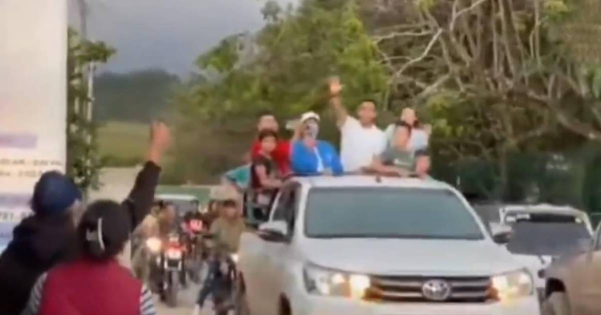 Carlos Argueta fue saludado por las personas mientras era trasladado en un vehículo junto a más personas. Se iban deteniendo y recibiendo las felicitaciones, mientras la caravana lo acompañó en el trayecto.