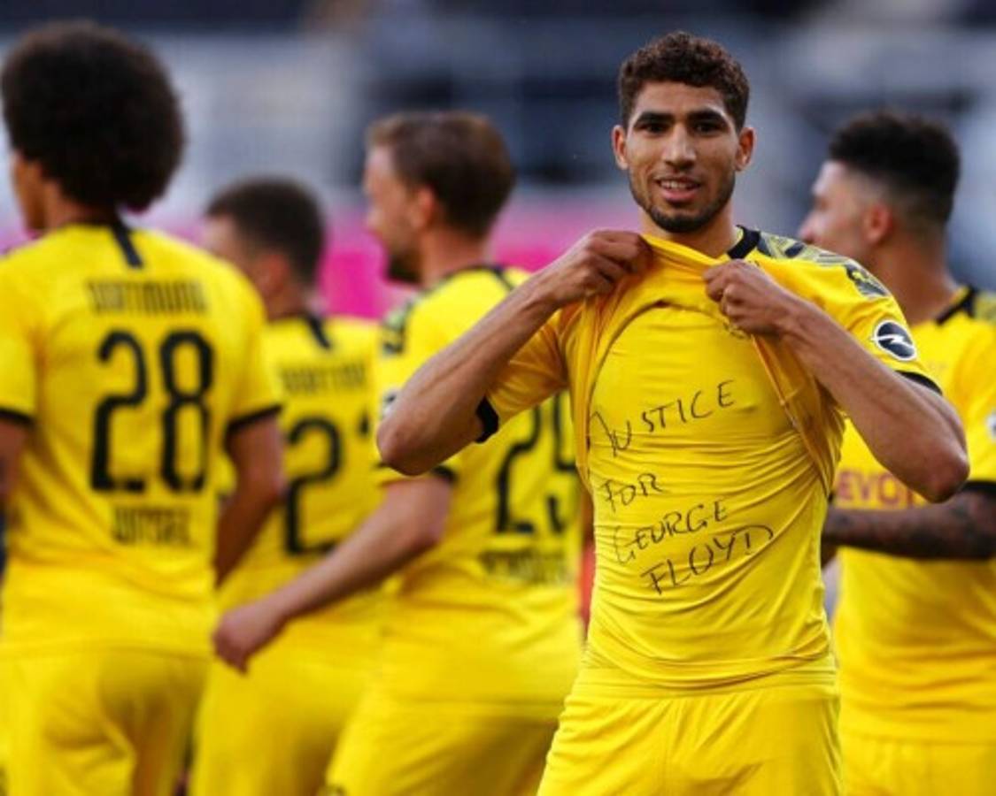 'Justice for George Floyd', mostraron en sus camisetas los jóvenes talentos del Dortmund Sancho y Hakimi.