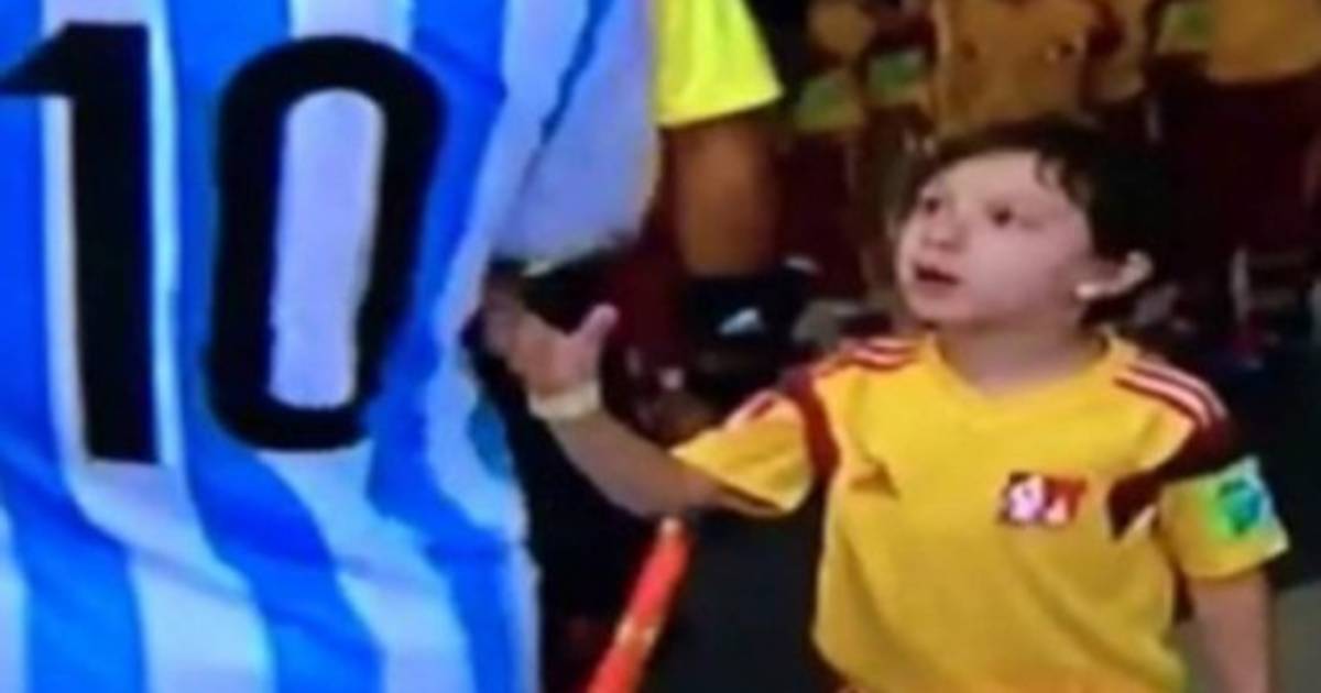 Lo que también se ve es la carita de pena de uno de los niños que ingresó al campo de juego junto a los jugadores de ambos seleccionados.