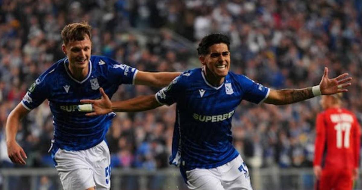 Poznan, Polonia.- Luis Palma se estrenó este jueves con un gol en la Conference League con la camiseta del Lech Poznań de Polonia que derrotó por 4-1 al Rapid Viena de Austria, en la primera jornada del torneo de la UEFA.