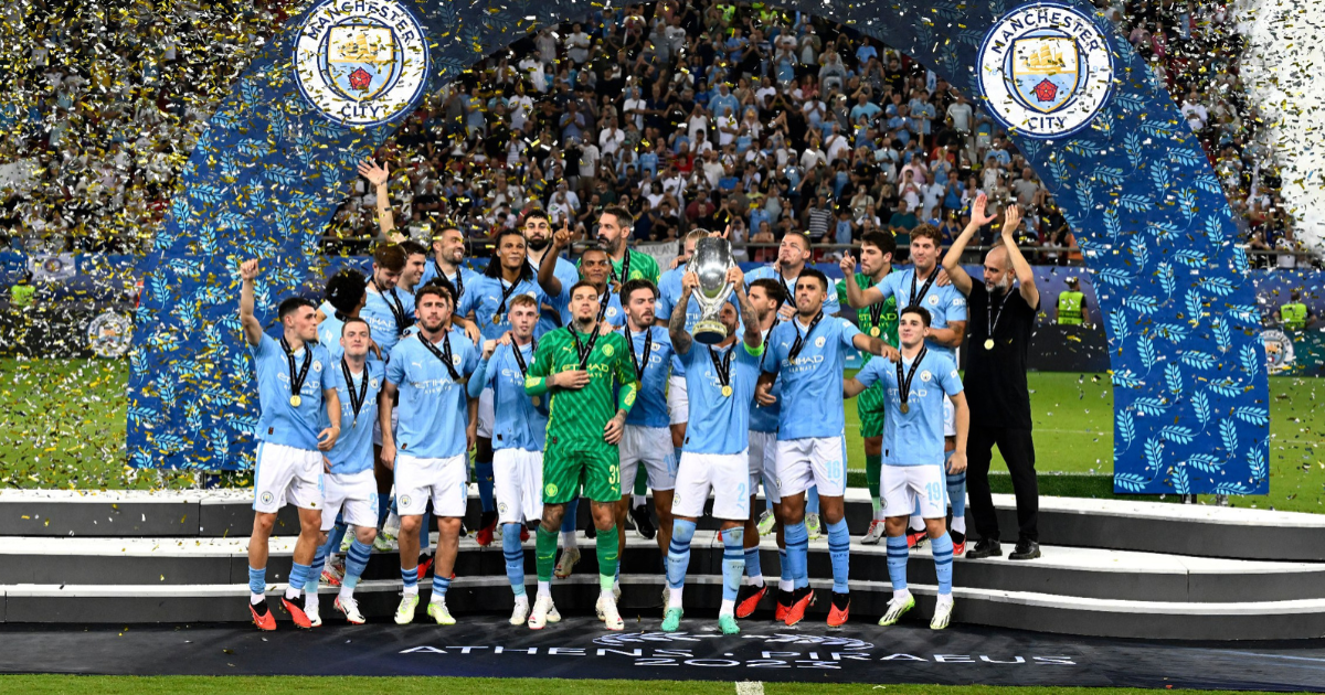 EL PIREO, GRECIA.- El Manchester City, vigente campeón de la Champions, logró la Supercopa de Europa al batir en los penales al Sevilla, vigente ganador de la Liga Europa, en los penales (5-4) tras haber igualado 1-1 en el tiempo reglamentario, este miércoles en Atenas.