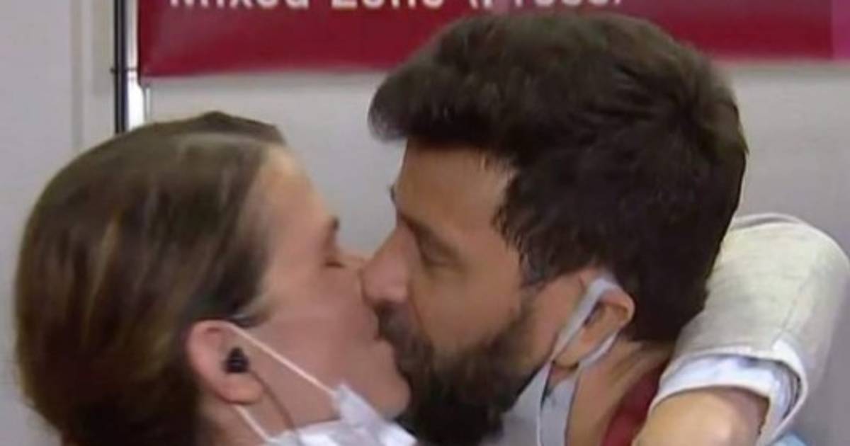 Mientras era entrevistada en directo él apareció con un cartel que decía: 'Flaca, ¿te querés casar conmigo?'. 'Decime que sí, decime que sí', insistía.