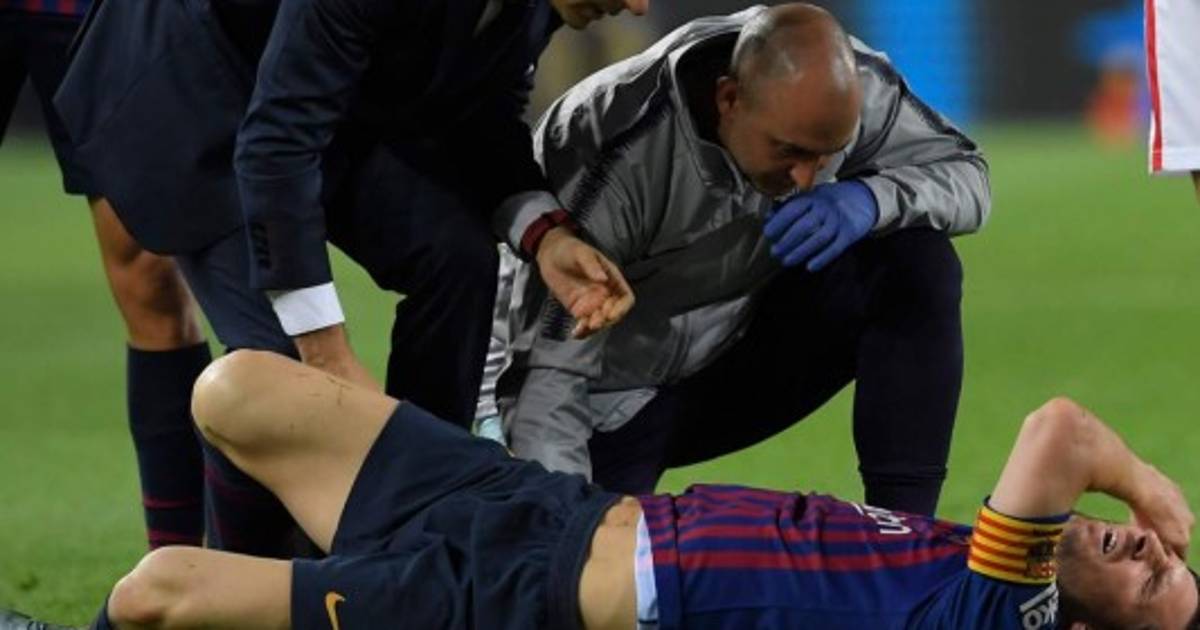 Messi tuvo que retirarse del campo tras un encontronazo con su compatriota del Sevilla Franco 'Mudo' Vázquez, al caer en mala posición sobre su brazo derecho en el minuto 17, tras lo cual se agarró esa extremidad, mientras se retorcía de dolor en el césped.