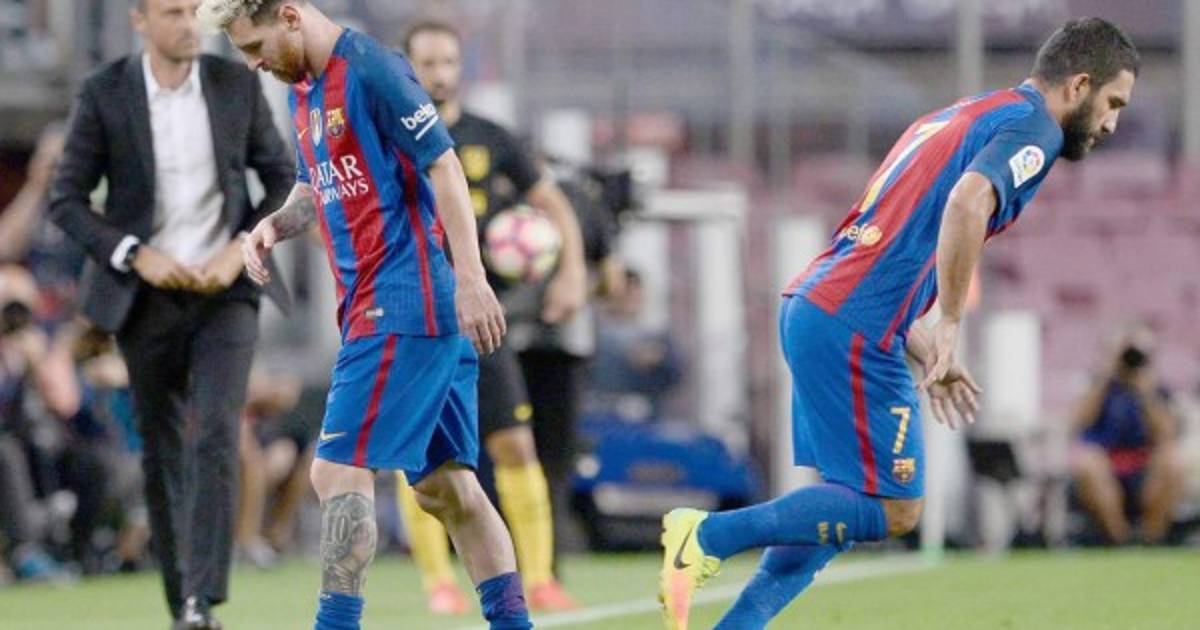 El cinco veces Balón de Oro interrumpió una carrera en el inicio de la segunda parte y se llevó la mano a la ingle, haciendo una señal a su banquillo sobre que no podía continuar. Se sentó en el campo y luego abandonó el césped andando, cediendo su lugar al turco Arda Turan (minuto 60).