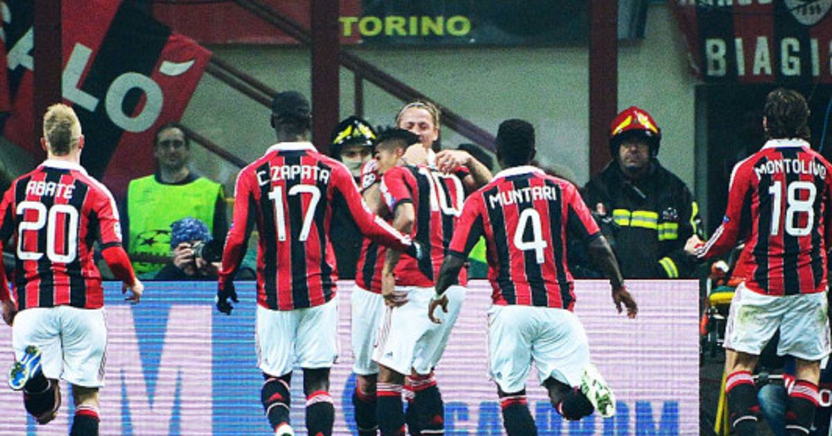 El primer gol del Milan llegó en el minuto 57 acompañado de polémica, cuando un disparo desde la frontal dio en la mano del colombiano Cristian Zapata y el balón quedó muerto para el ghanés Kevin-Prince Boateng, que aprovechó el desconcierto para marcar el 1-0.