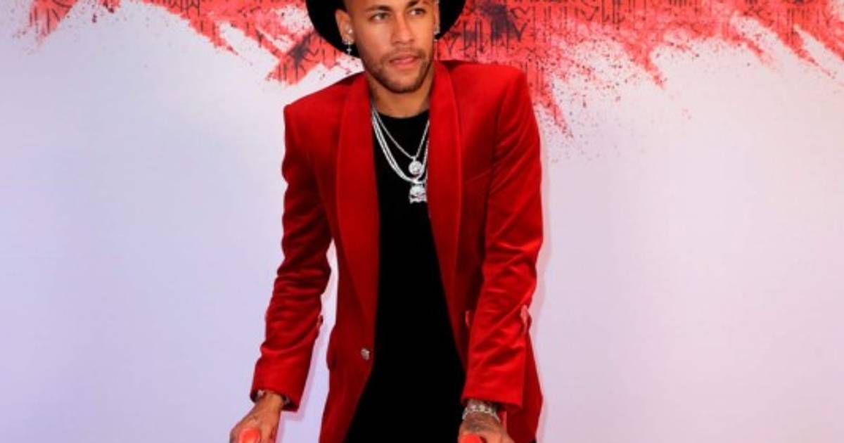 Neymar llegó apoyándose en unas muletas de color rojo vivo, a conjunto con el 'dress code' de la velada.