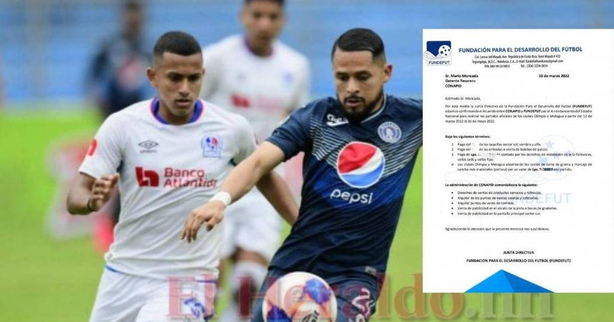 “Por este medio la Junta Directiva de la Fundación Para el Desarrollo del Futbol (FUNDEFUT) estamos confirmando el Acuerdo entre CONAPID Y FUNDEFUT por el Arrendamiento del Estadio Nacional para realizar los partidos oficiales de los clubes Olimpia y Motagua a partir del 12 de marzo 2022 al 31 de mayo 2022”, dice el documento.