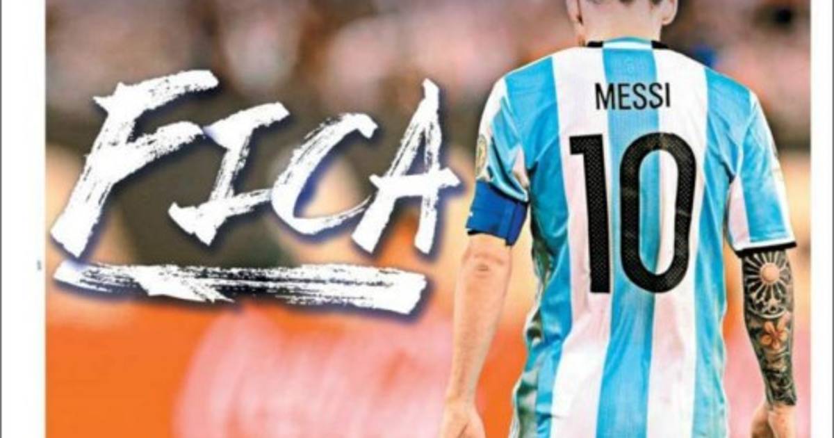 El diario brasileño Lance! trató con ironía la renuncia de Leo a la Selección. Lance!, uno de los periódicos deportivos de Brasil escribió “Quedate” como título principal, acompañado por una foto de Messi.