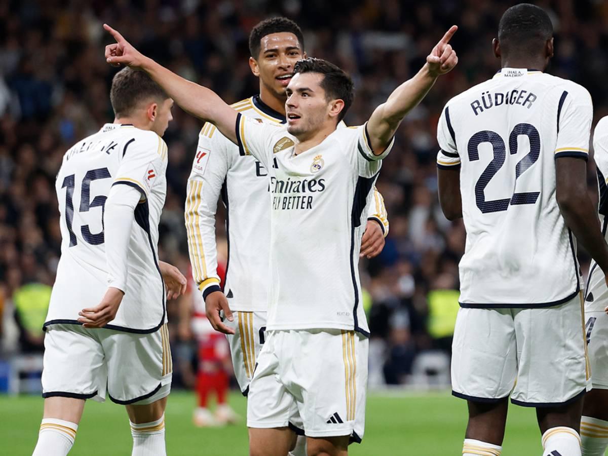 MADRID, ESPAÑA.- Con goles de Brahim Díaz y Rodrygo en sendas jugadas espectaculares, el Real Madrid se impuso al Granada para mantener la punta del campeonato español de fútbol, este sábado en el Estadio Santiago Bernabéu.