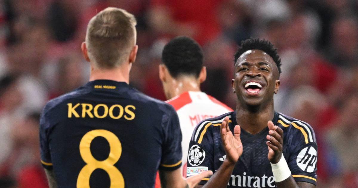 MUNICH, ALEMANIA.- El Real Madrid está enfrentando al Bayern Múnich en el Allianz Arena por la semifinal de ida de la Champions League y se puso en ventaja con el tanto de Vinicius.
