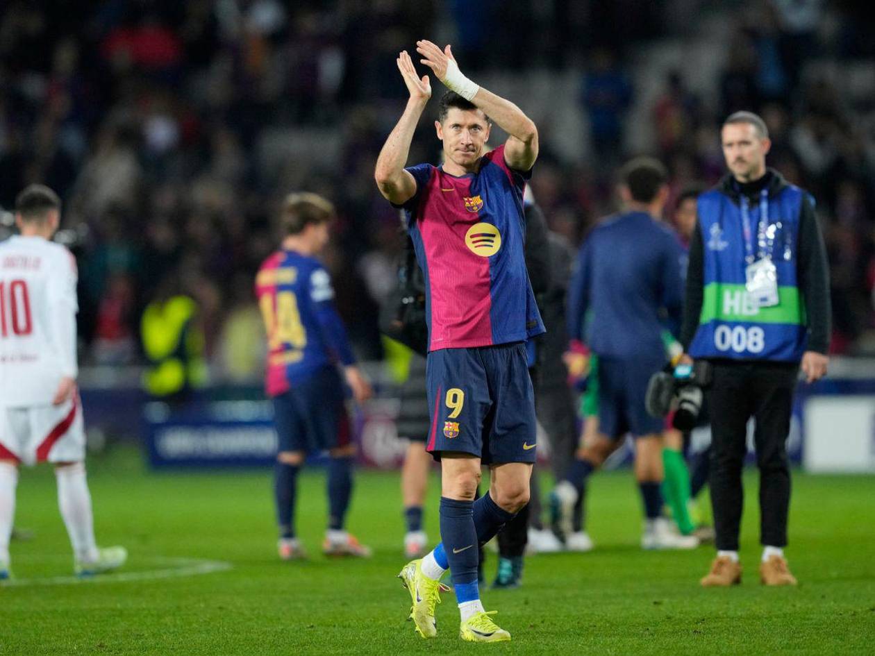 Barcelona, España.- El delantero polaco Robert Lewandowski se consagró hoy ante el Stade Brestois como el tercer máximo goleador en la Champions League con un doblete que le llevó a superar la brecha de los 100 goles.
