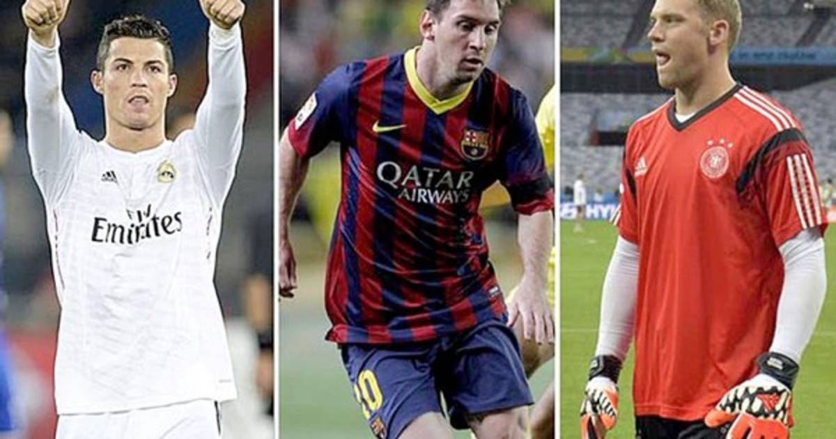 El portugués Cristiano Ronaldo (Real Madrid), el argentino Lionel Messi (Barcelona) y el portero alemán Manuel Neuer (Bayern Múnich) son los tres finalistas para el premio Balón de Oro 2014.